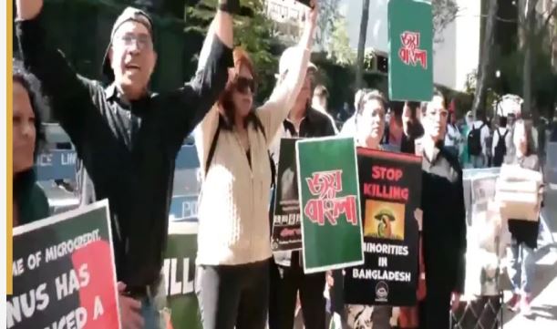 अमेरिका में बसे बांग्लादेशी प्रवासियों ने अपने देश में अल्पसंख्यकों के खिलाफ बढ़ते अत्याचारों के विरोध में प्रदर्शन शुरू कर दिया ह...