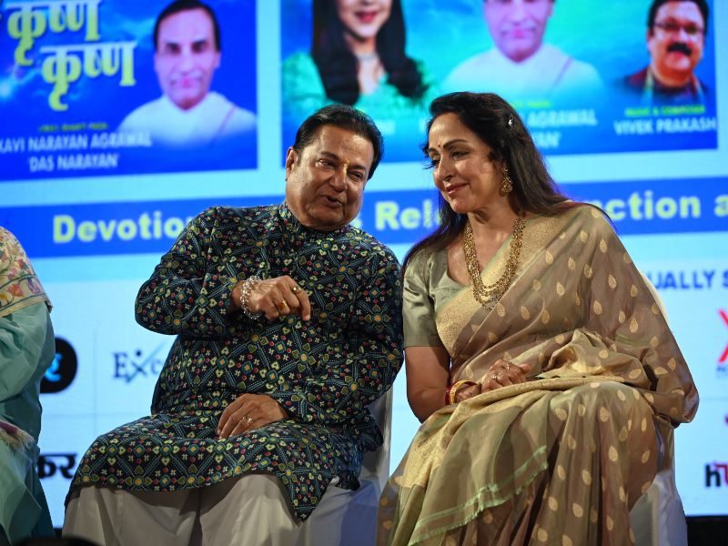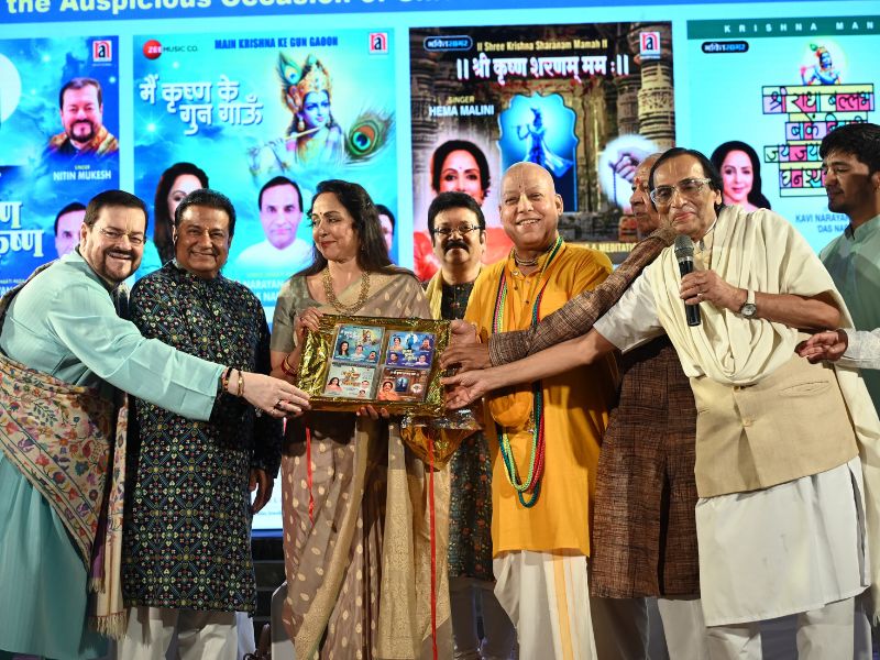 Hema Malini, Nitin Mukesh, Anup Jalota, Anuradha Paudwal At Grand Release Of 4 Bhajans At ISKON Temple